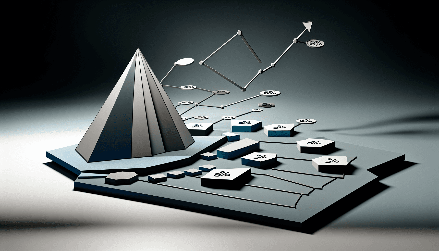 3D-Diagramm zur Content-Struktur SEO mit verschiedenen Elementen und Prozentsätzen.